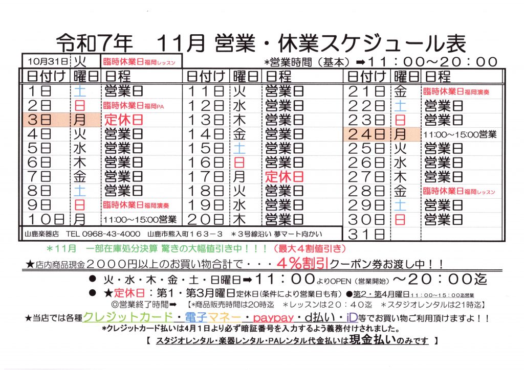 担当) 山鹿楽器店 店主 長瀬 TEL 0968-43-4000