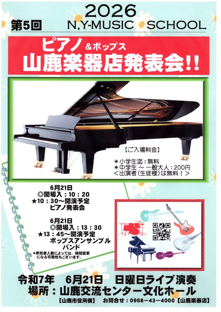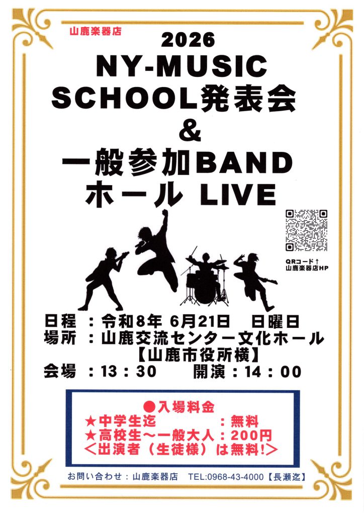 山鹿楽器店主催 一般参加BAND ホールライブ出演者募集中!